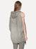 Hooded sleeveless wrap in Cold Khaki. Open front. Slit at shoulders, sides with strap detailing. Asymmetric hem. Tonal stitching. Light jersey crafted from 100% Cotton. Made in Italy by Lost & Found. Model is Height 5’10”, Bust 34 B”, Waist 25”, Dress 2. Model wears a size Small (S).