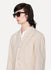 Rectangular sunglasses in Black and Tortoiseshell. Tortoiseshell pattern at borders, inner face and inner temples. Brown gradient lense. Sterling silver accent at inner temple tips and hinges. Sterling silver logo plaque at inner temple. Ann Demeulemeester x Linda Farrow collaboration. Handmade in Japan from Acetate and Sterling Silver. Product code: AD3C6SUN. Size: 53.18 140.