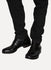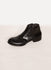 Ankle high boots in Oil Black. Round half lifted last. Grey blue cotton infinity laces. Lace up closure at inner side. Stacked heel and sole wall in oak bark tanned leather. Goodyear wood-nailed construction. Blue lining. Crafted from genuine Horween shell cordovan. Handmade in Italy by m_moria by Maurizio Altieri.