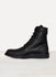 Leather boots in Black. The Vitelli Olio Lavato Nero boots from famed Belgian label Ann Demeulemeester takes on a rugged and refined appearance based on the classic ankle high Goodyear welted military style. Constructed in Italy from the finest quality supple Calf leather upper, the boot is styled with a full lace up construction with tonal eyelets and lacing, completed with a traction tread sole unit delivering underfoot performance.