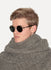 A round metal frame, the Z3 sunglasses from KUBORAUM are handcrafted with a hammered metal rim and nose bridge with silver gold and tone finish and green flat lenses, porcelain nosepads, secured by solid hinge to low profile carved tortoiseshell acetate arms. Handmade in Italy.
