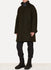 Vintage flannel muffler padded coat in Khaki Green. This super limited production mid length muffler coat style updated with Yohji Yamamoto’s distinctive silhouette and expertly crafted from considerately sourced Japanese material, is strikingly on point and just one piece available. The muffler padded coat epitomizes Yohji’s approach through its use of a down filled soft wool blend flannel outer, dyed to produce a deep comfortable vintage wash. Styled with storm cuffs and a stand collar with detachable blanket-like insulating scarf with paneled construction and zippered fastenings that can be swathed at the neck taking care of all cold weather needs. Coat is fully lined with two way concealed zip closure and two welt pockets to the front. Autumn Winter 2016-17 Homme Paris collection show piece, Look 1. Made in Japan.