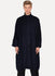 Long sleeve wool and cashmere blend coat in Navy. Constructed with a selection of considered and careful detailing, including a two welt hand warmer pockets, dropped shoulders, a classic placket with exposed buttons, and full Cotton lining with internal slip pockets. Cut using a flowing fabric crafted from 90% Virgin Wool 10% Cashmere. This coat is a refined take on a traditional piece of outerwear. Made in France by Casey Casey. Model wears size (M).