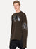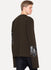 Long sleeve from Damir Doma in smoked brown winter cotton jersey, shredded applique, raw edge ribbed crew neck, cuffs, and hem. Made in Italy.