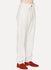 White loose-fit trousers from Daniel Andresen, styled with pleated front, waistband drawstring, button fly, three pockets, made using a winter weight woven cotton linen cloth 50% linen 50% cotton. Made in Belgium.