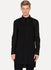 Long tunic shirt from InAisce, band collar, real shell button placket with solid .925 Silver toggle, cut from true black semi-sheer wool, very crisp and structured.