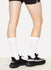 Long cut white socks from 11 by Boris Bidjan Saberi, 11 logo in ventiliating mesh knit crafted from 63% polyamide 32% sof tair mesh 5% elastane.