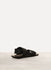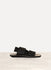 Black open leather sandals from Lost & Found Ria Dunn, crafted from calf leather with a wax finish, leather straps with suede slingback, stacked leather and rubber midsole. Made in Italy.