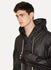 Fishtail parka in Black from Rick Owens DRKSHDW in a light coated interweaving wind resistant nylon fabric with full lining, zip and snap front closure, exaggerated drawstrings. Made in Italy.