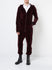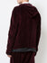 Unisex hoodie in Bordeaux from Individual Sentiments in a turpan velvet crafted from 84% cotton 16% polyethylene with pinstripe cotton lining. Made in Japan. Model wears size 3.