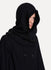 Hooded scarf in Black from Lost & Found Ria Dunn in a soft light weight ribbed wool blend crafted from 10% angora 30% wool 60% linen, consist of two panels forming a hood. Made in Italy.
