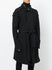Black cotton-wool blend single-breasted coat from Lost & Found Ria Dunn featuring a classic collar, raw edges, a tie waist, two front pockets and long sleeves.