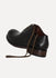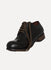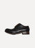 Derby shoes in Oil Black. Round lifted last. Diagonal natural and black cotton laces. Stacked heel and sole wall in oak bark tanned leather. Extra sole protection crafted from coconut fiber and rubber. Goodyear wood-nailed construction. Red lining. Crafted from genuine shell cordovan from the highest quality cordovan tannery, Horween. Handmade in Italy by m_moria by Maurizio Altieri.