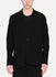 Loose fit blazer in Black. V collar. Crossover closure with two button fastening at front. Buttoned seam pockets at waist. Underarm openings. Vent at rear. Boiled textile offering exceptional comfort and lightweight warmth, crafted from 50% Ramie 50% Linen. Made in Belgium by Jan-Jan Van Essche. Model is Height 6’1”, Weight 140 lb, Waist 32”, Hipline 33”. Model wears a size Medium (M).